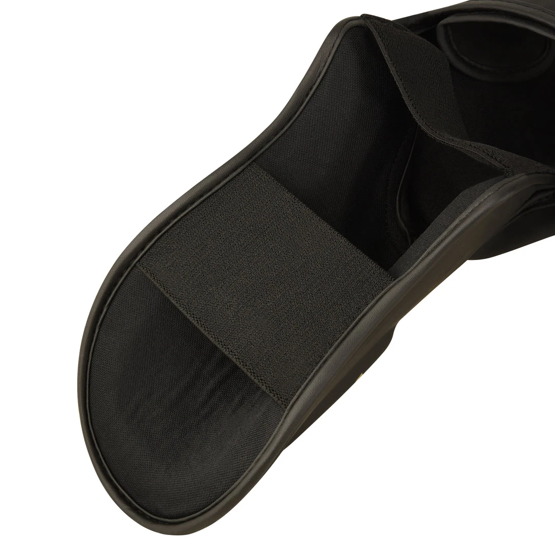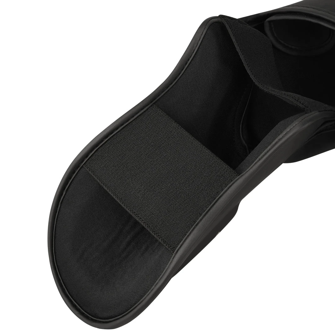 - High density foam with additional padding (shinbone and instep) for enhanced Shock Absorption. Large Velcro straps for a no-slip fit Strong Closing Velcro System Convenient Adjustable Strap Hook and-loop straps Really Secure